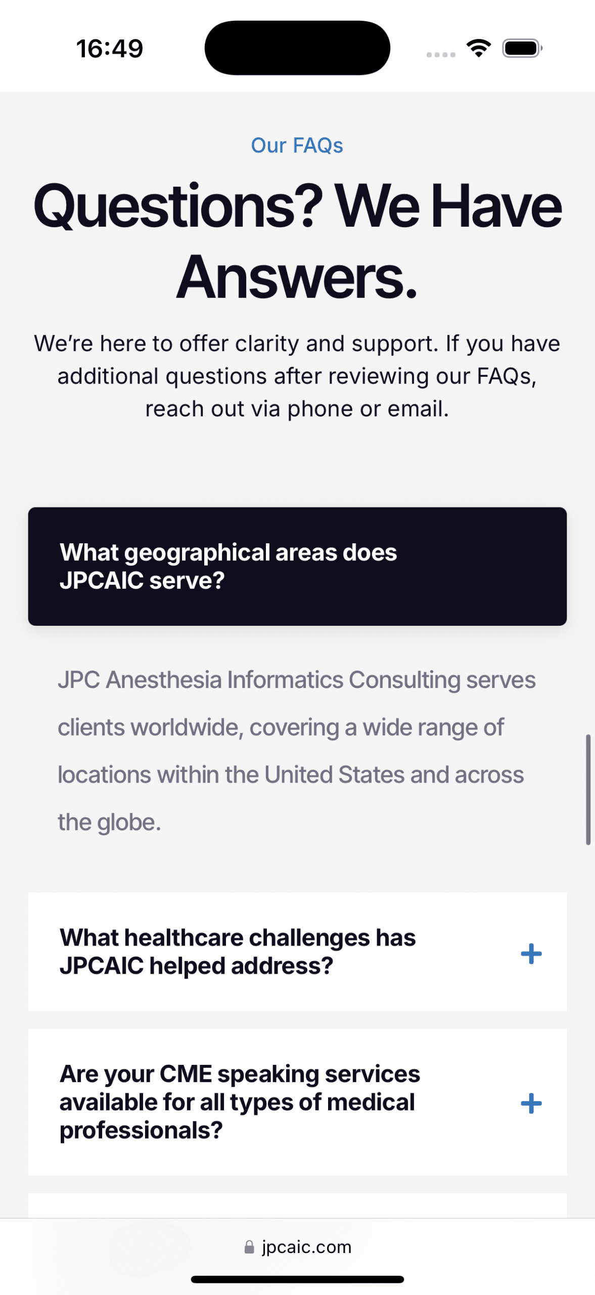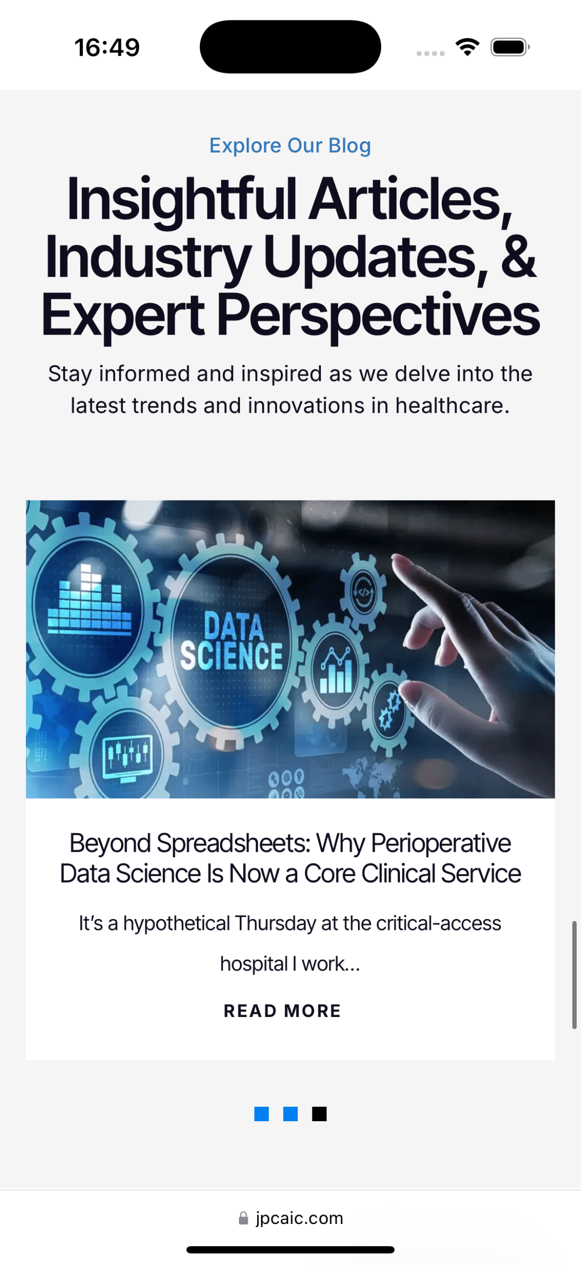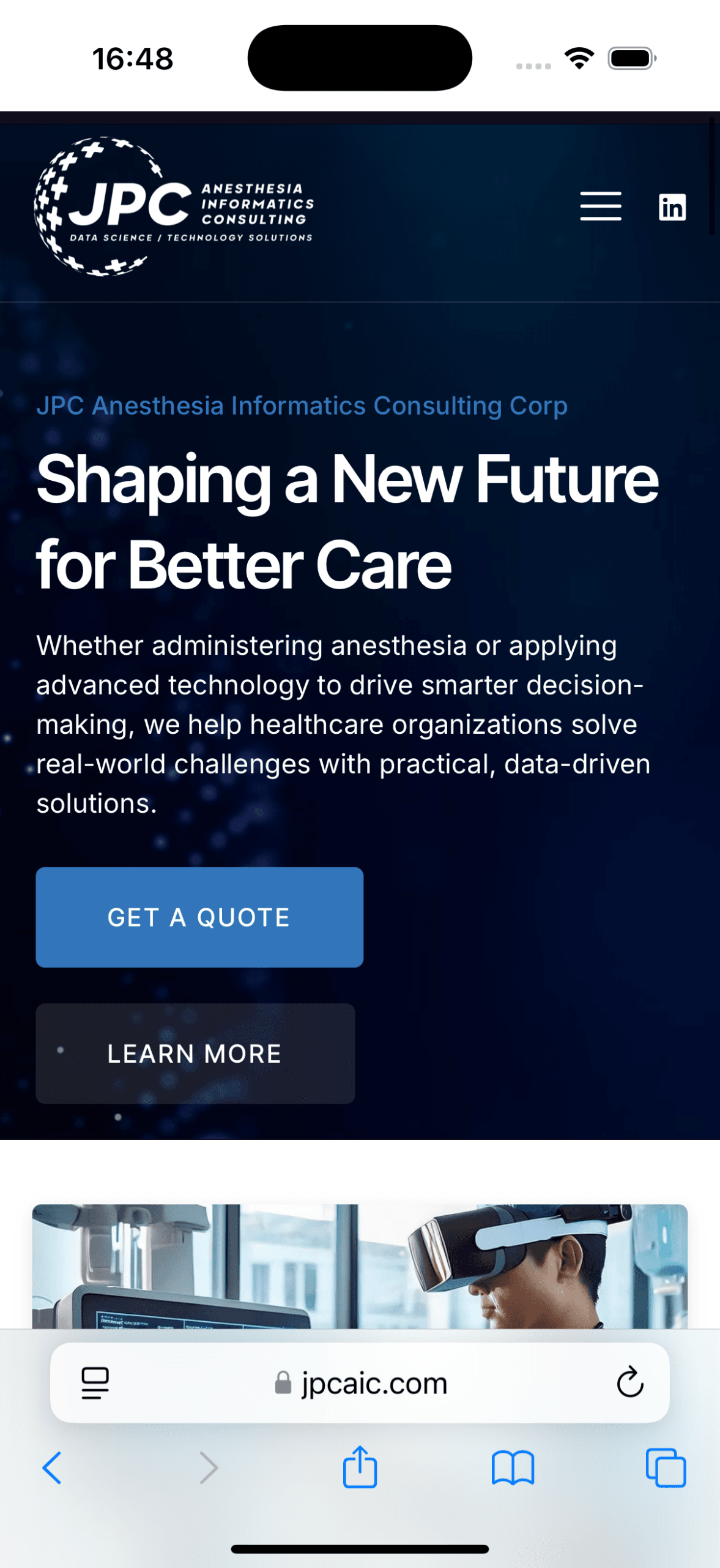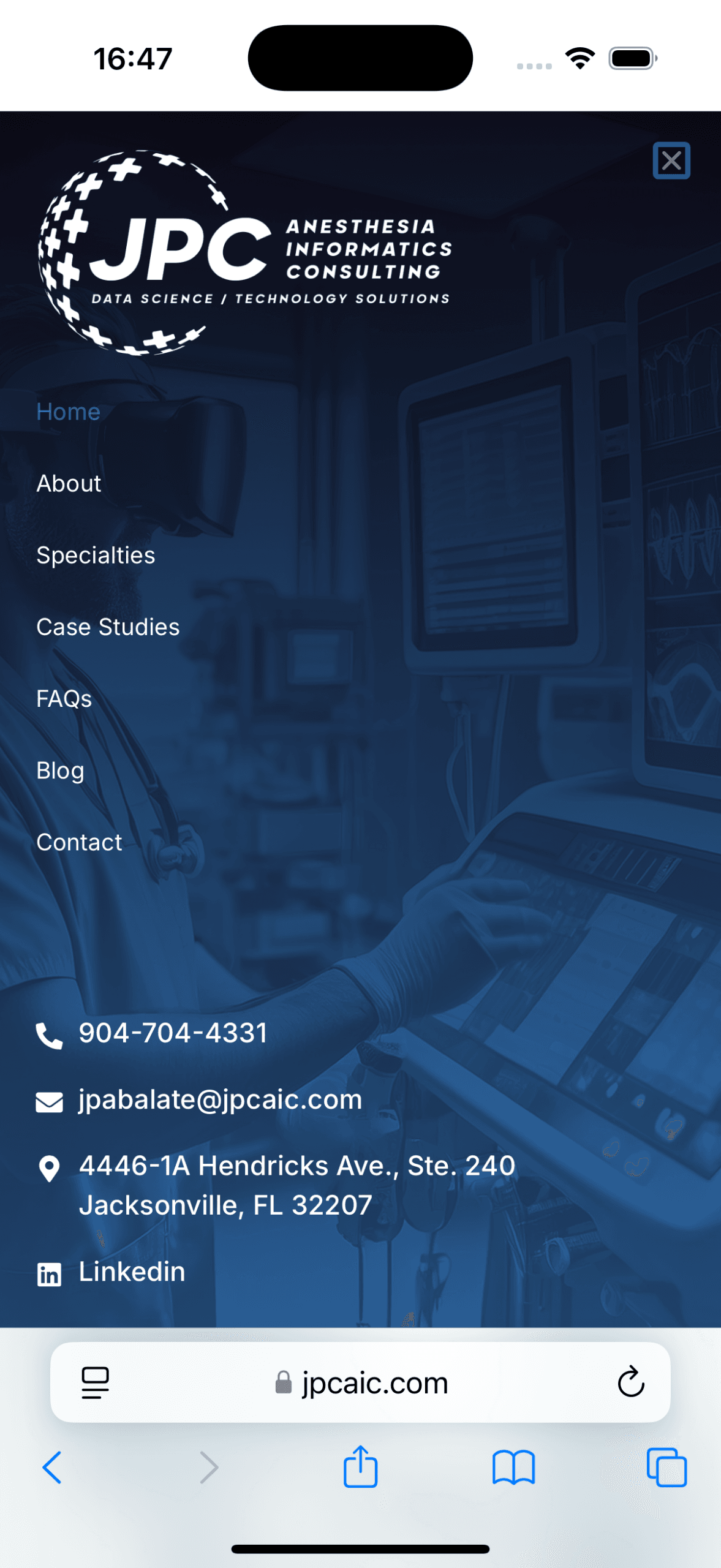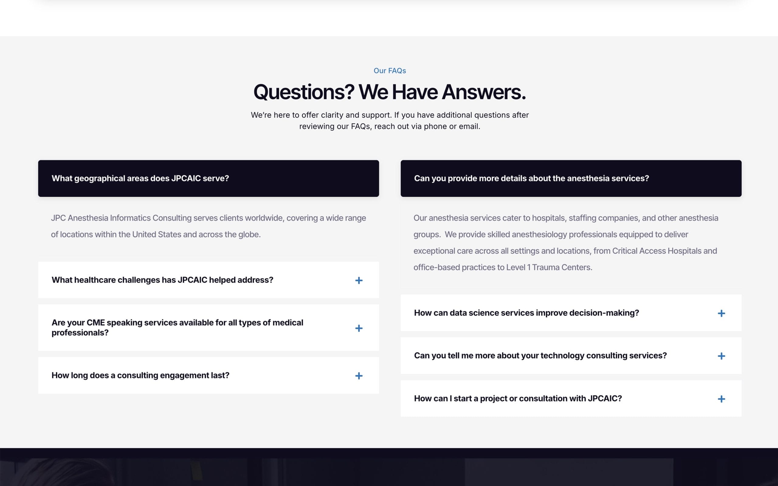 Oferta JPCAIC acoperă atât servicii clinice de anestezie, cât și consultanță în tehnologie și știința datelor, ceea ce făcea dificilă clarificarea rapidă a beneficiilor pentru tipuri diferite de decidenți din healthcare. Site-ul vechi nu ghida utilizatorii către acțiuni clare (programări, cereri de acoperire, consultanță) și nu valorifica suficient autoritatea fondatorului. Era nevoie de o arhitectură de informație mai clară, mesaje diferențiate pe servicii și trasee de conversie scurte.