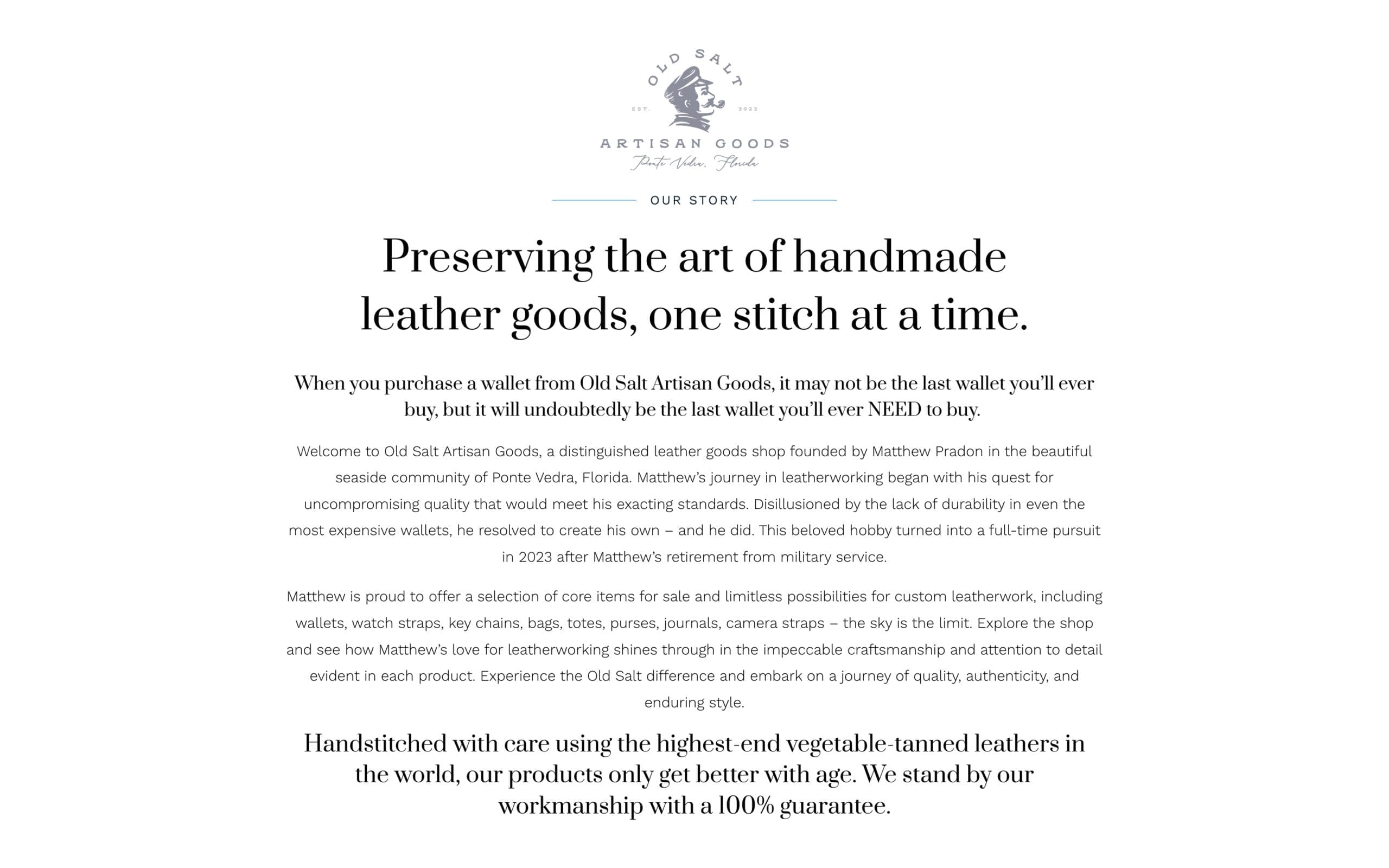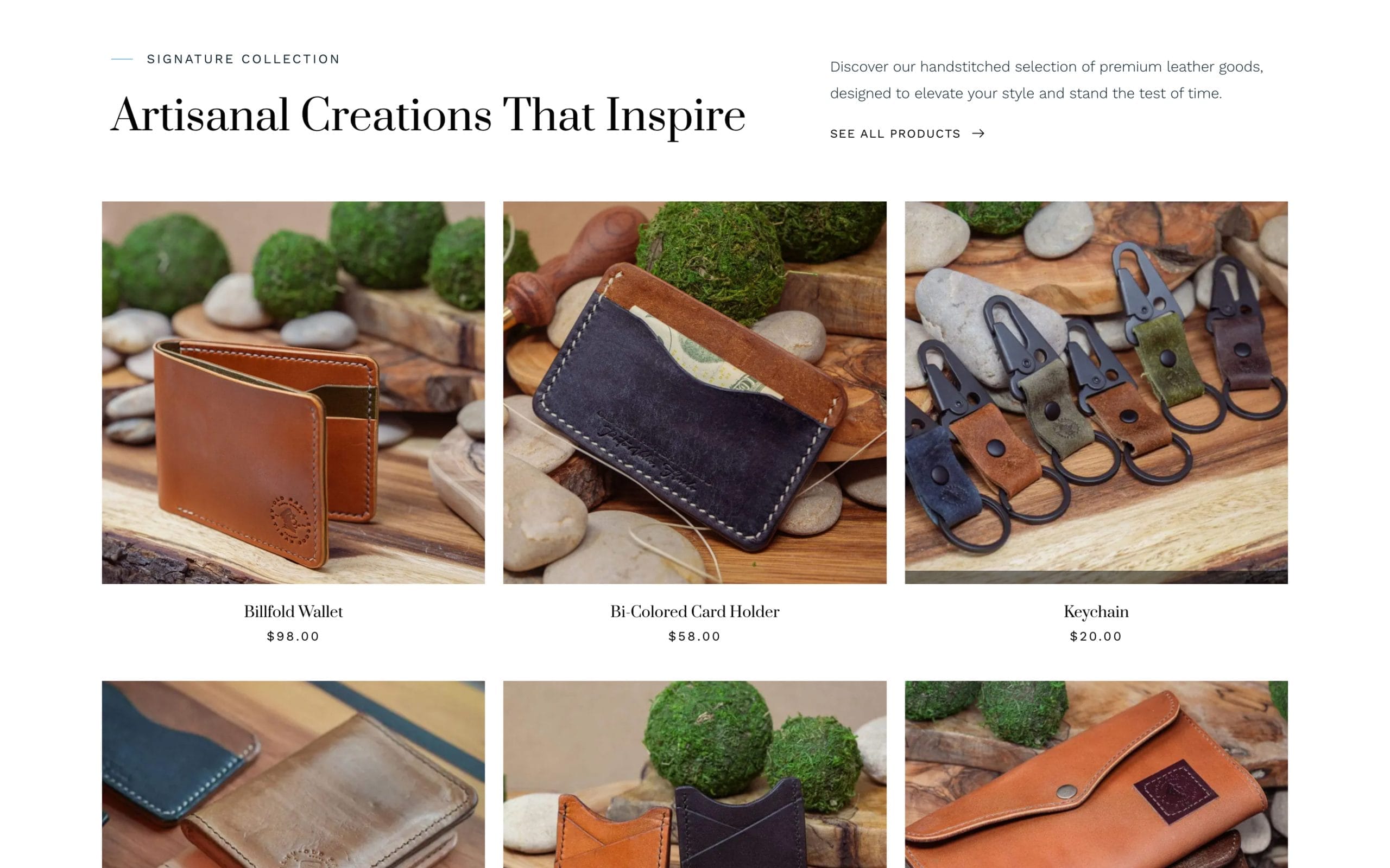 Brandul avea nevoie să transmită rapid calitatea și tradiția produselor lucrate manual, să prezinte clar colecția cu prețuri și să explice procesul pentru comenzi custom. Era necesar un flux simplu către cumpărare și dovezi de încredere (garantie, materiale, testimoniale), plus conținut suport (FAQs) care să reducă fricțiunile.